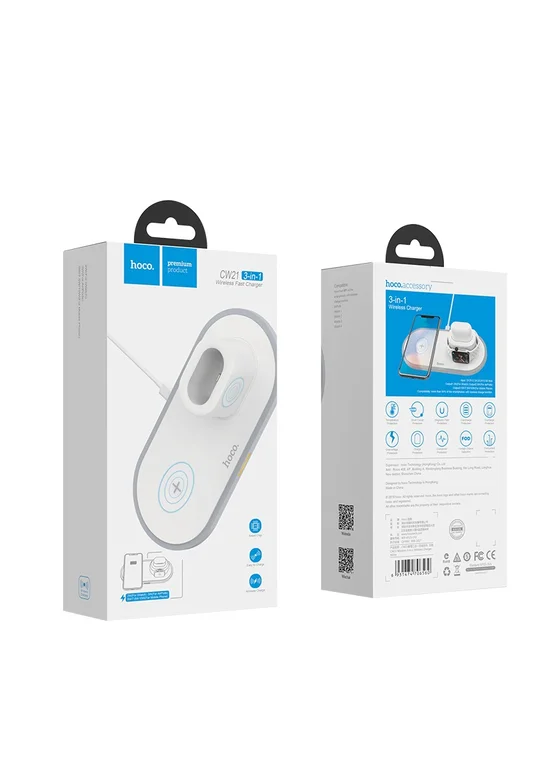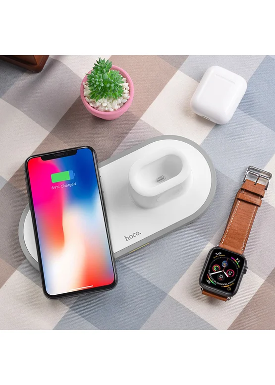 Бездротове зарядний пристрій HOCO CW21 3in1 (Білий)