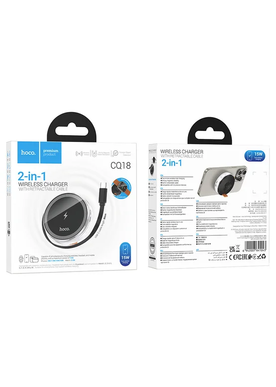 БЗУ Hoco CQ18 Flash 2in1 Magnetic + iWatch (з retractable cable Type-C) Silver