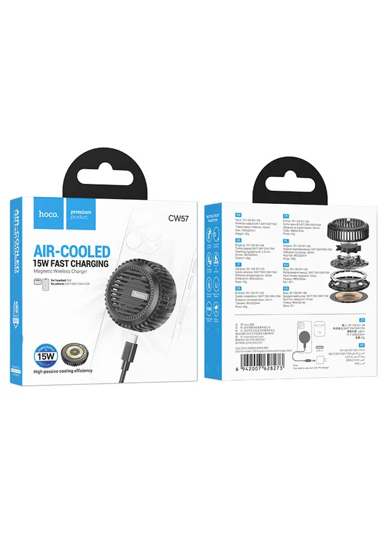 БЗУ Hoco CW57 Air-cooled 15W magnetic wireless fast charger Black