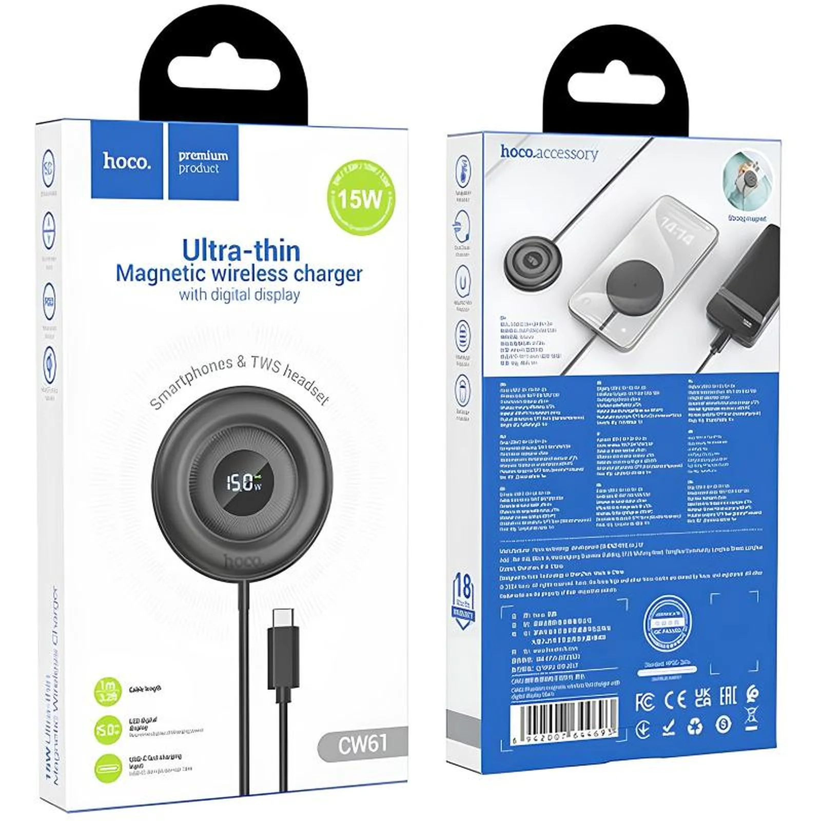БЗУ Hoco CW61 Phantom magnetic with digital display