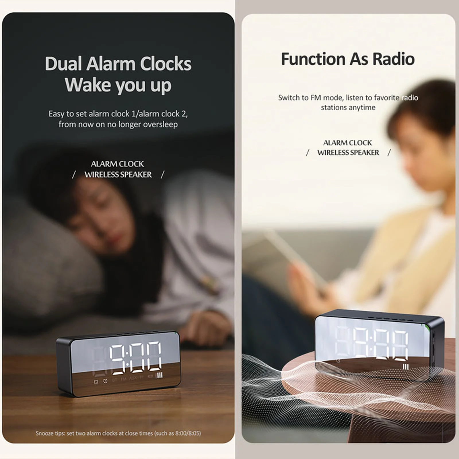 Bluetooth колонка + годинник Usams US-YX007 FM-Tuner AUX BT5.0 (Чорний)