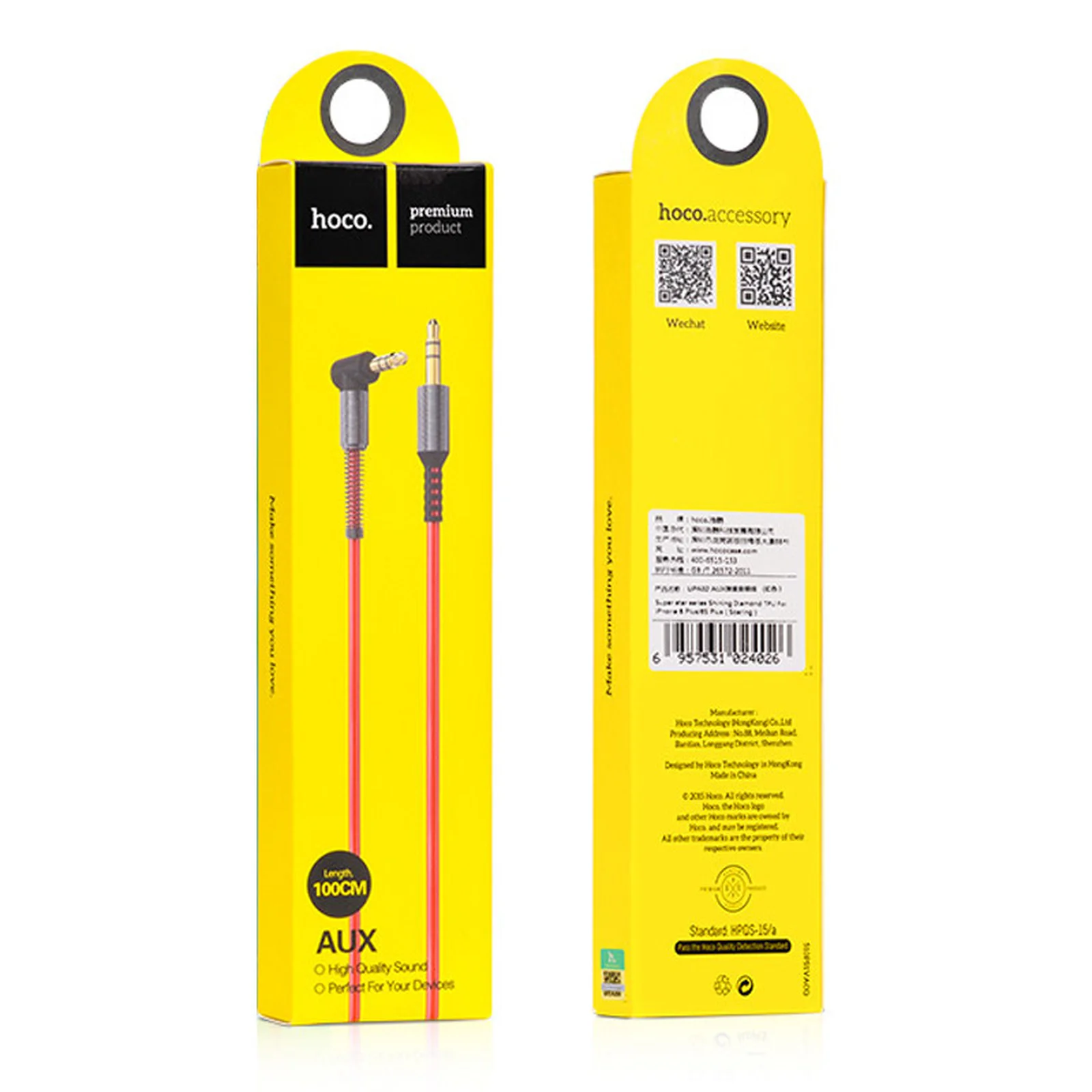 Кабель для передачі звуку. Коннектори посилені шаром металу, мають додатковий захист від зламів. Довжина кабелю 1 м. Встановлення з'єднання між пристроями здійснюється через aux - aux.