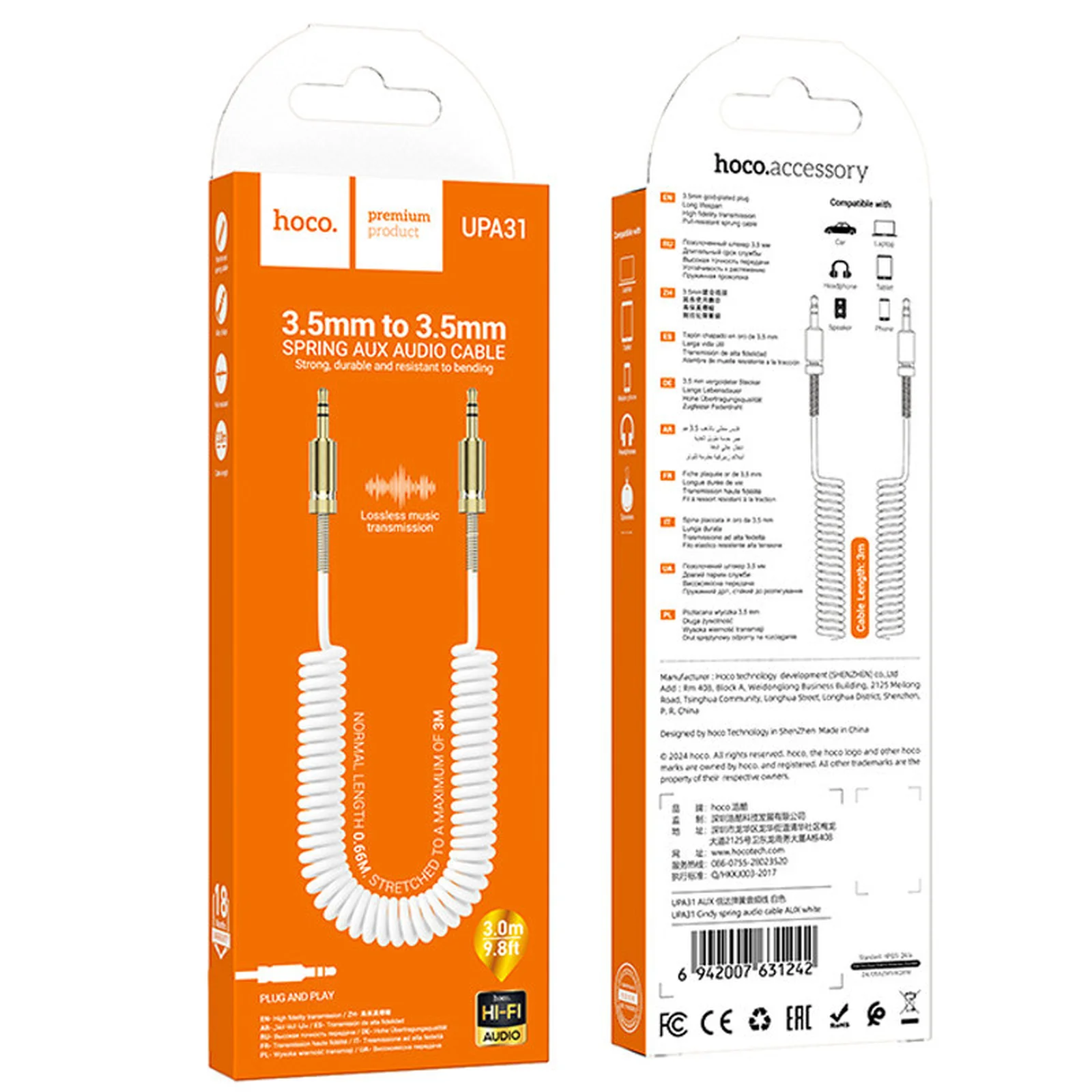Аудіо кабель Aux Hoco UPA31 Cindy spring (3m) White