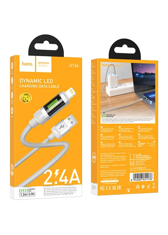 Дата кабель Hoco U126 Lantern 2.4A USB to Lightning (1.2m) Gray