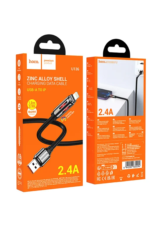 Дата кабель Hoco U136 Prize USB to Lightning 2.4A (1.2m) Black