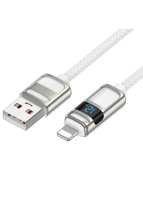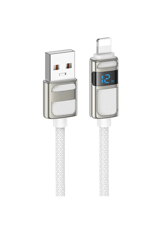 Дата кабель Hoco U137 Line with display USB to Lightning 2.4A/12W (1.2m) White