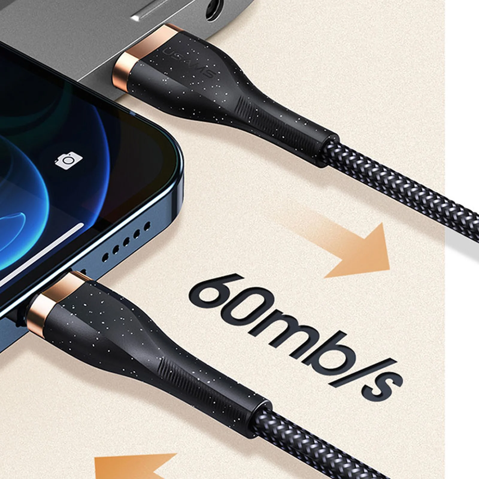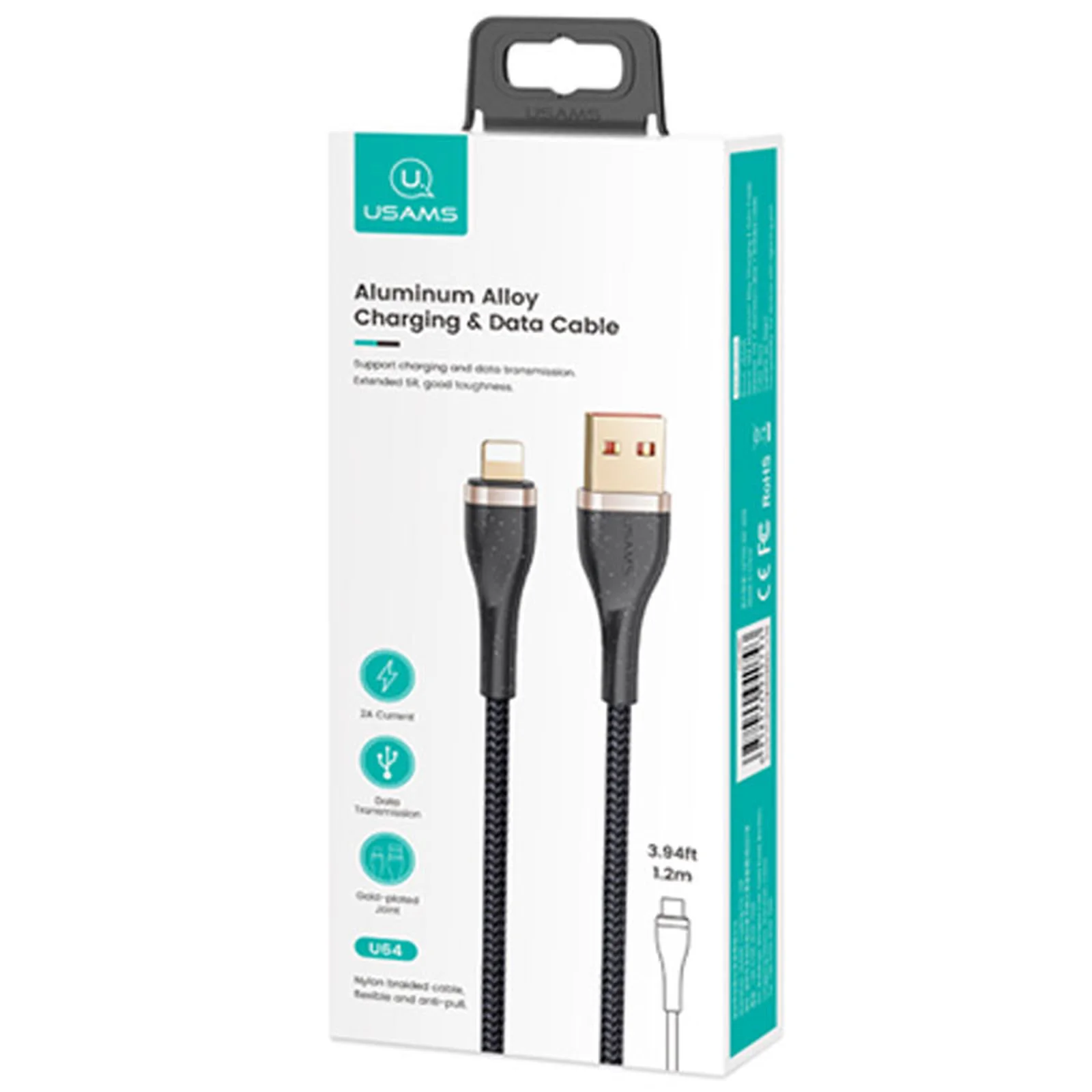 Дата кабель Usams US-SJ487 U64 Aluminum Alloy USB to Lightning 1.2m Чорний