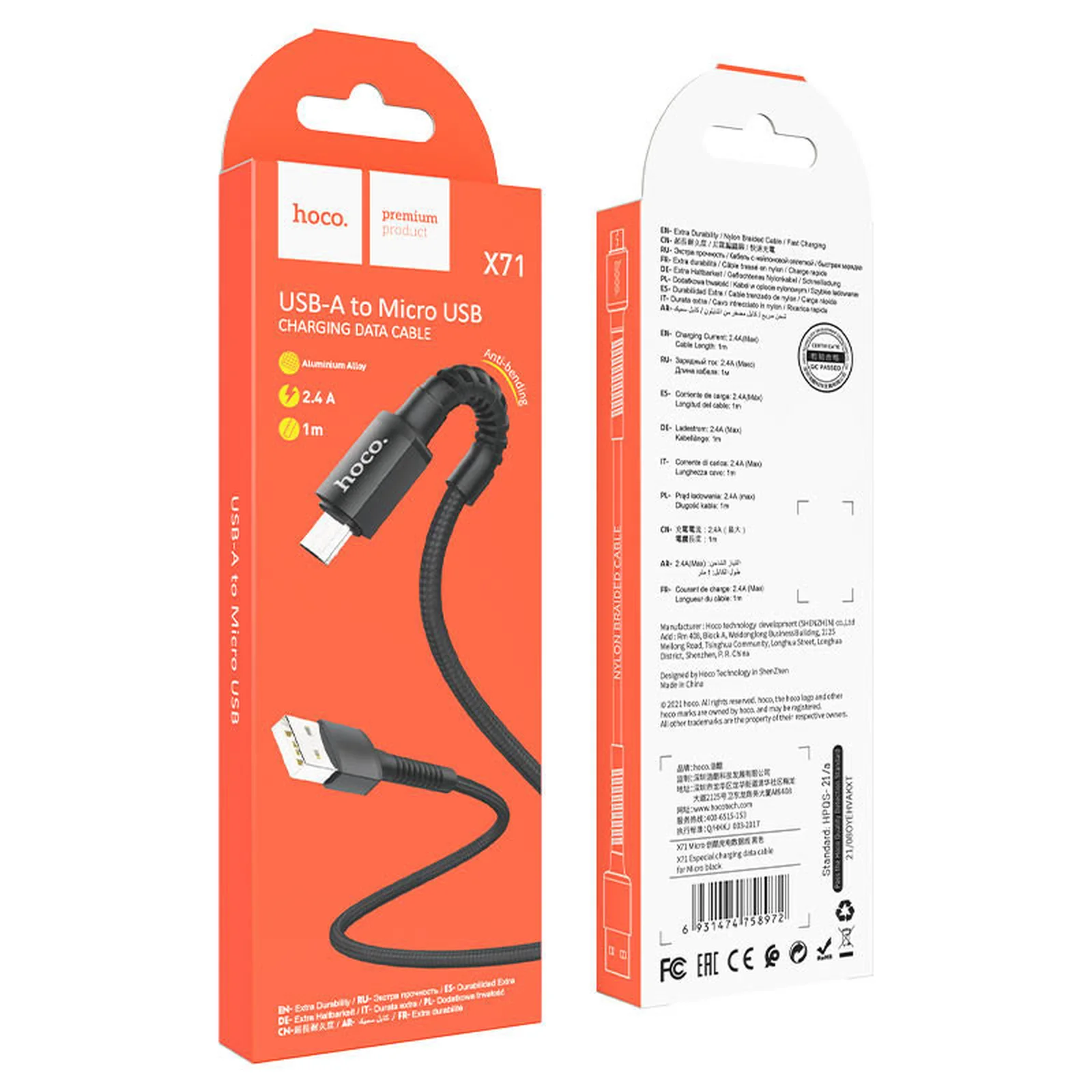 Дата кабель Hoco X71 "Especial" MicroUSB (1m) Black