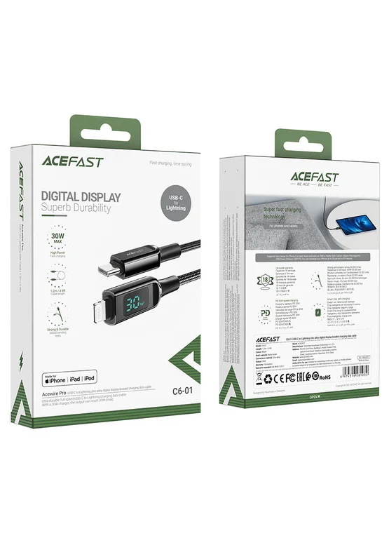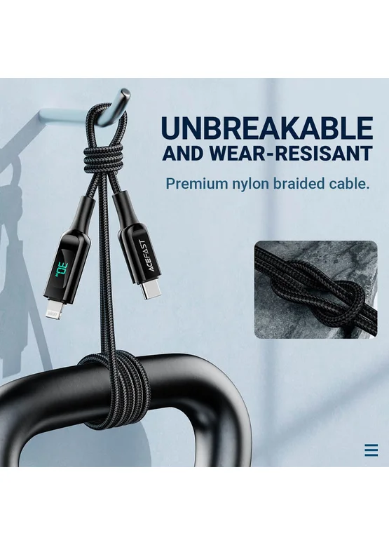 Дата кабель Acefast MFI C6-01 USB-C to Lightning zinc alloy digital display braided (1m) Black