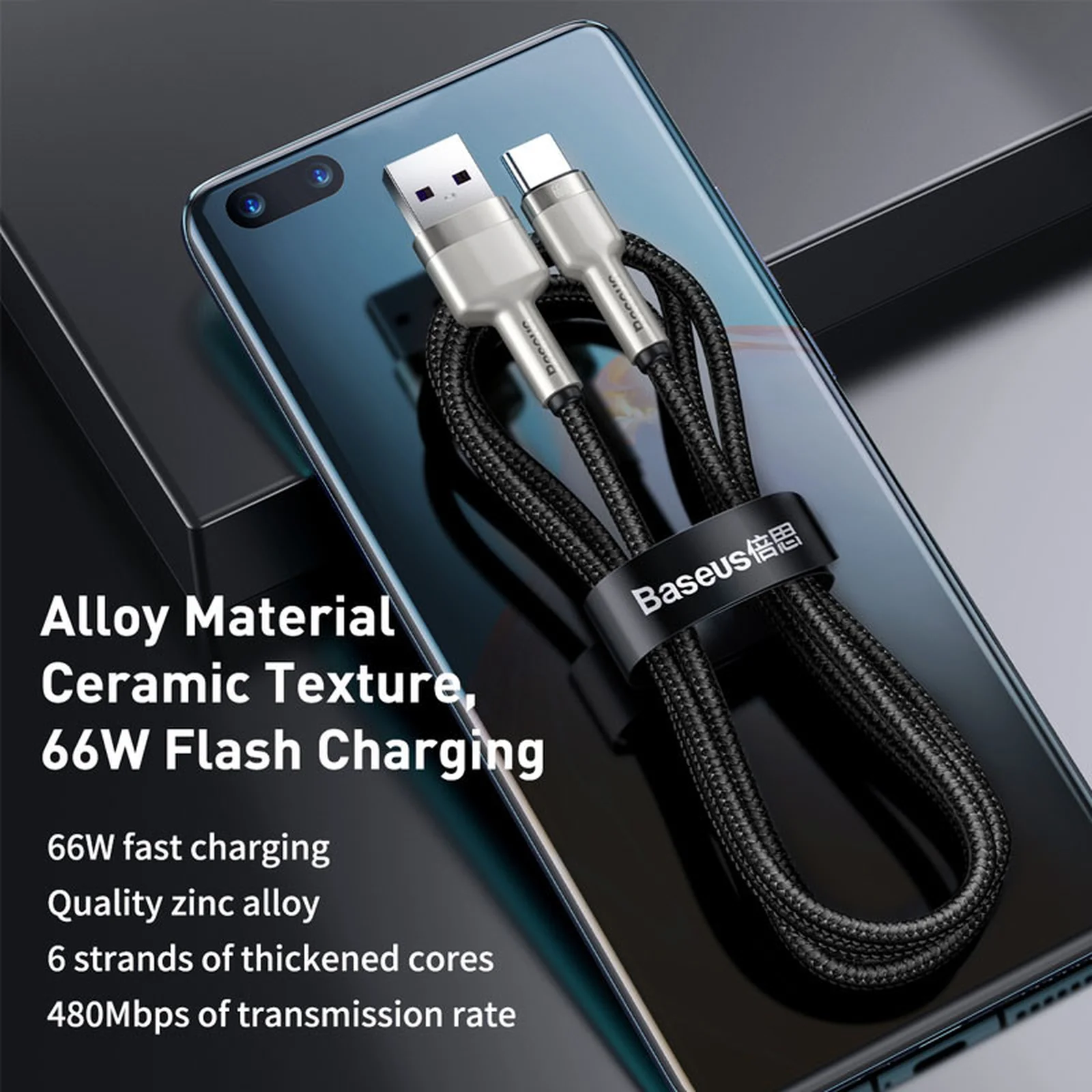 Дата кабель Baseus Cafule Metal Data USB Type-C 66W (1m) (CAKF00010) Black