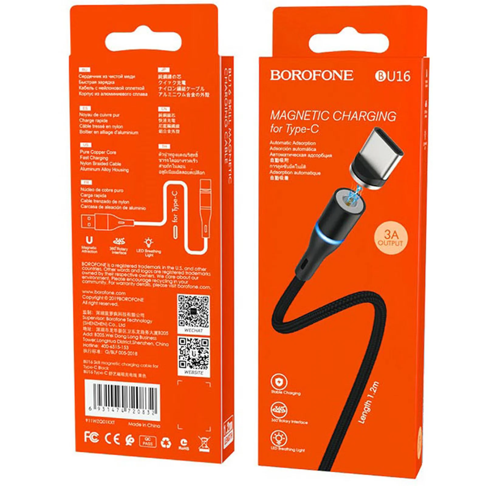 Дата кабель Borofone BU16 Skill magnetic USB to Type-C (1.2m) Чорний