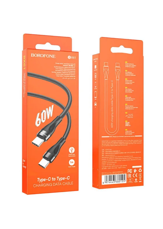 Дата кабель Borofone BX61 Source 60W Type-C to Type-C (1m) Black