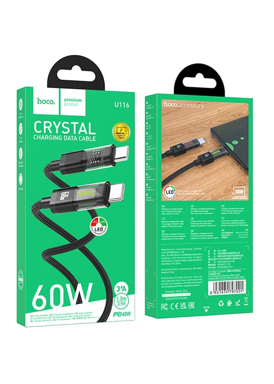 Дата кабель Hoco U116 Transparent Discovery Edition 60W Type-C to Type-C (1.2m) Black