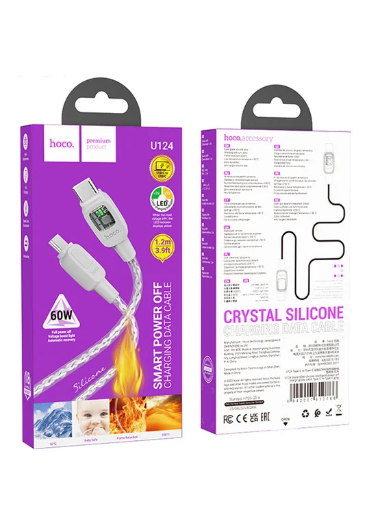 Дата кабель Hoco U124 Stone silicone power-off 60W Type-C to Type-C Gray
