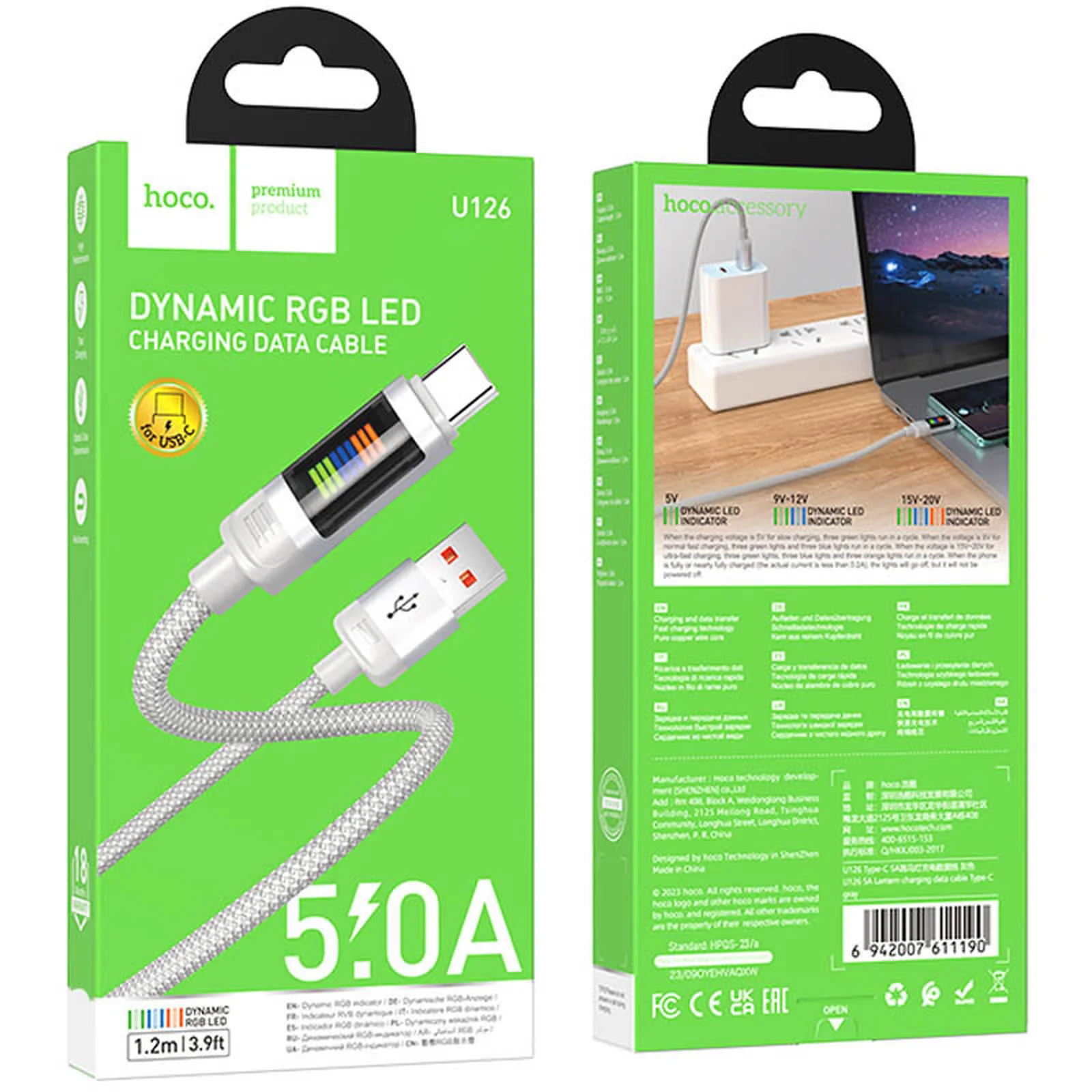 Дата кабель Hoco U126 Lantern 5A USB to Type-C (1.2m) Gray