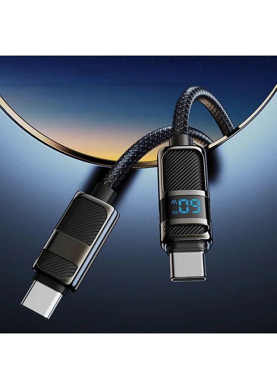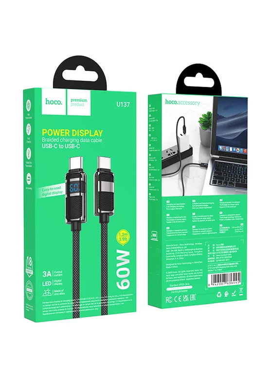 Дата кабель Hoco U137 Line with display Type-C to Type-C 60W (1.2m) Black