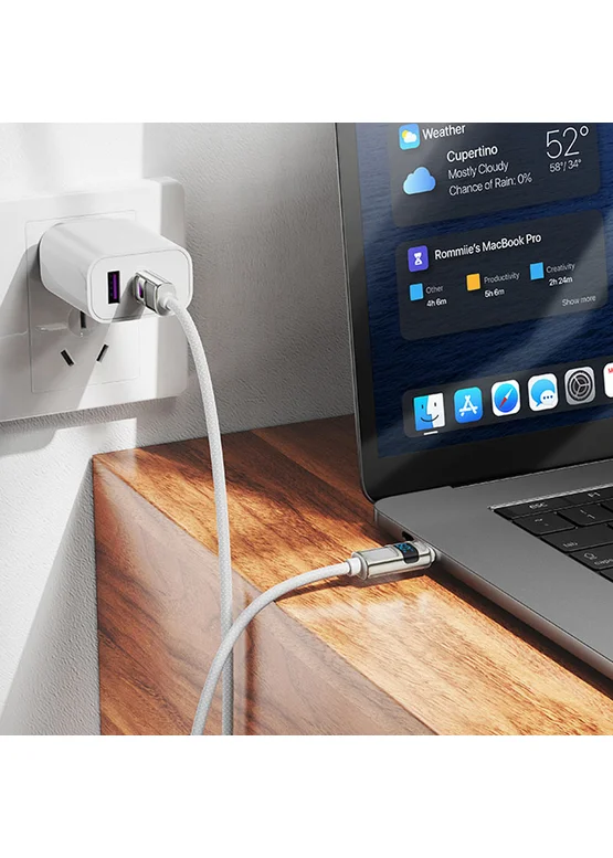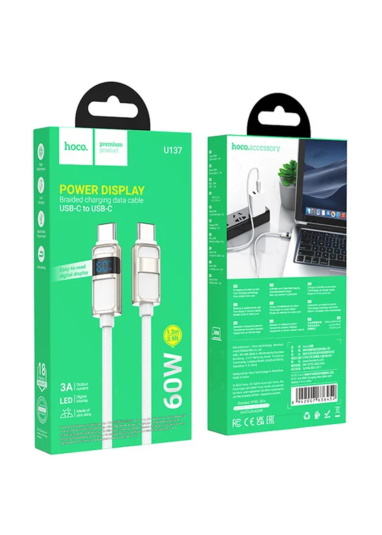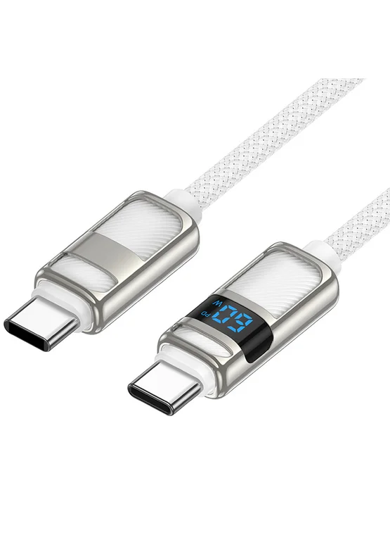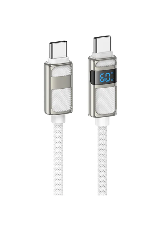 Дата кабель Hoco U137 Line with display Type-C to Type-C 60W (1.2m) White