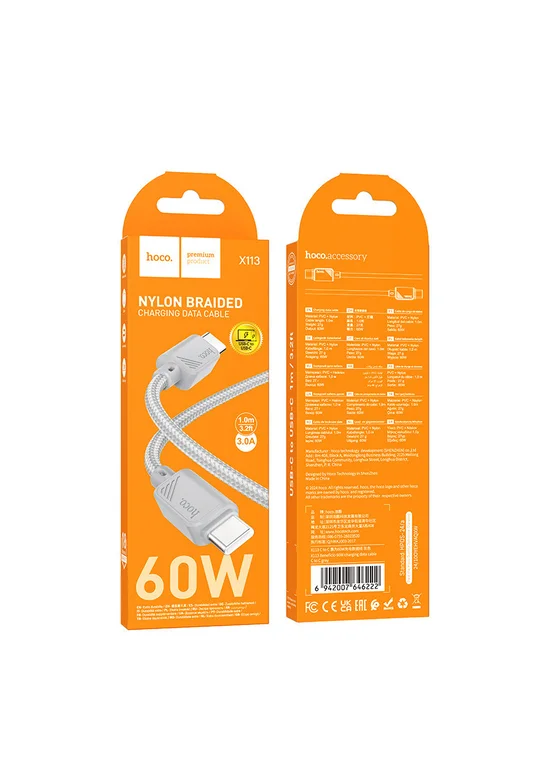 Дата кабель Hoco X113 Beneficio Type-C to Type-C 60W (1m) Gray
