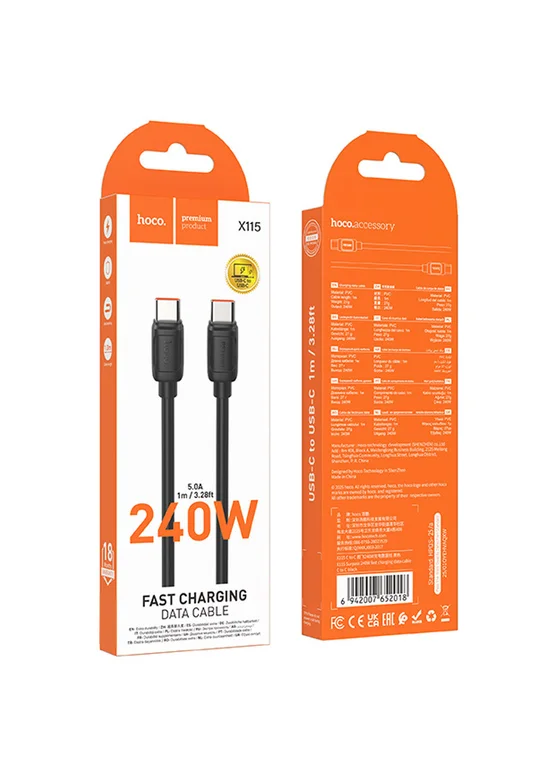 Дата кабель Hoco X115 Surpass Type-C to Type-C 240W (1m) Black