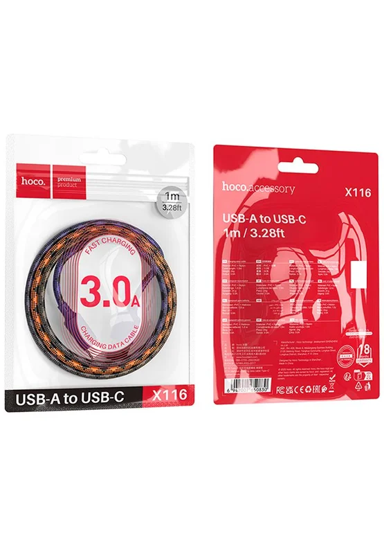 Дата кабель Hoco X116 Meridian USB to Type-C 3A (1m)
