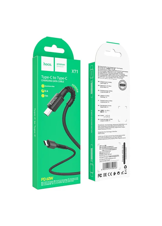 Дата кабель Hoco X71 "Especial" Type-C to Type-C 60W (1m) Чорний