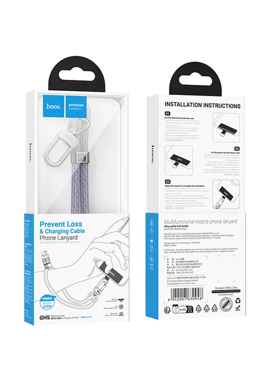 Дата кабель-шнурок Hoco GH5 Elegant Type-C to Lightning (0.21m) Denim Blue