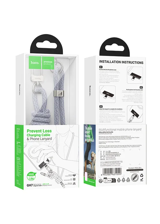 Дата кабель-шнурок Hoco GH7 Elegant Type-C to Lightning (1.8m) Denim Blue