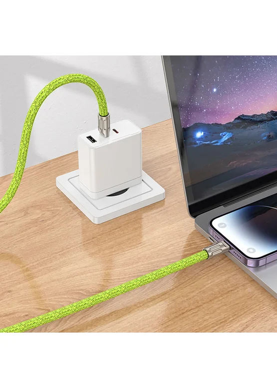 Дата кабель-шнурок Hoco GH7 Elegant Type-C to Lightning (1.8m) Fluorescent Green