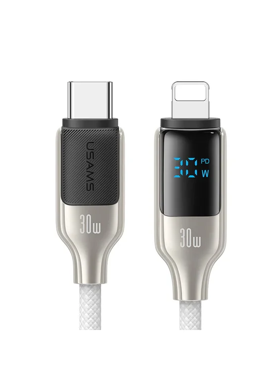 Дата кабель Usams US-SJ741 Digital Display HX Ser. Type-C to Lightning 30W (1.2m) Titanium