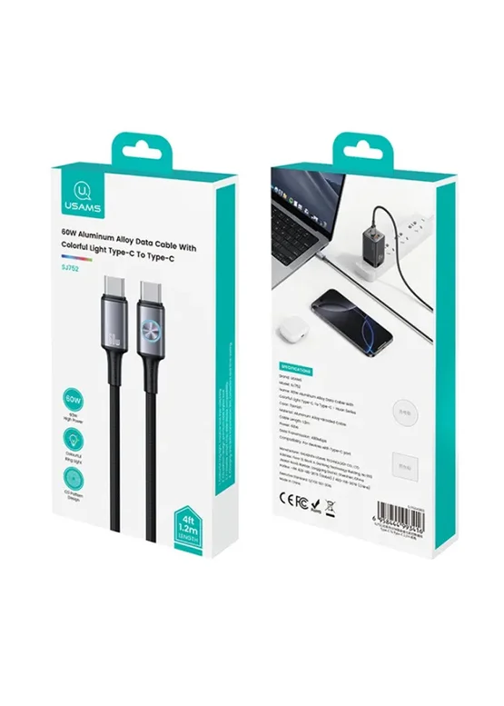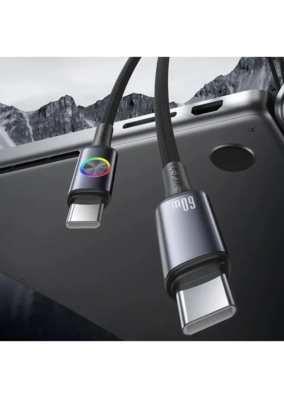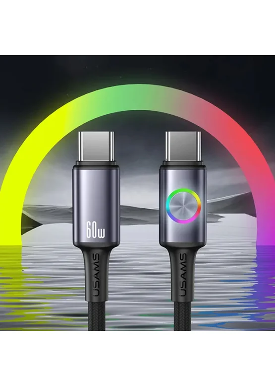 Дата кабель Usams US-SJ752 With Colorful Light Huan Ser. Type-C to Type-C 60W (1.2m) Tarnish