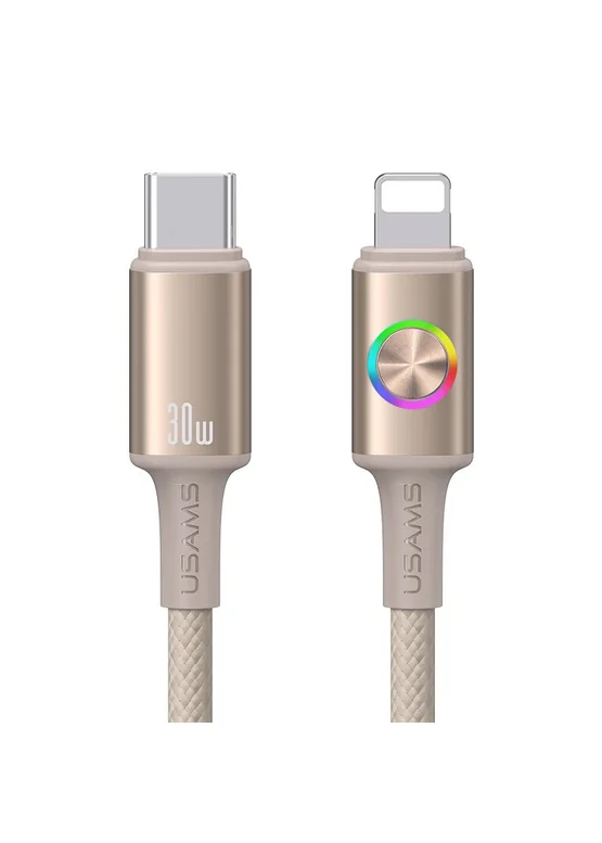 Дата кабель Usams US-SJ753 With Colorful Light Huan Ser. Type-C to Lightning 30W (1.2m) Desert Titanium