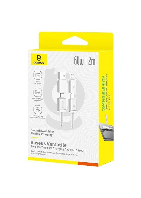 Дата кабель Baseus Versatile Two-for-Two USB/Type-C to Type-C/Lightning 60W (2m) (P10383000)
