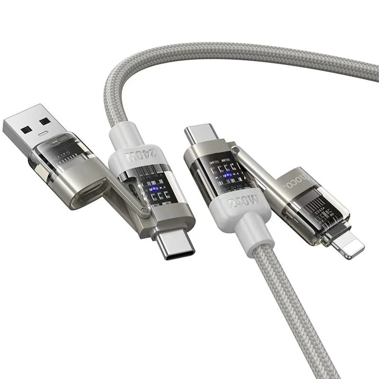 Дата кабель Hoco U151 Goldsmith 4in1 Type-C для USB/Type-C для Lightning 240W (1.2m) Gray