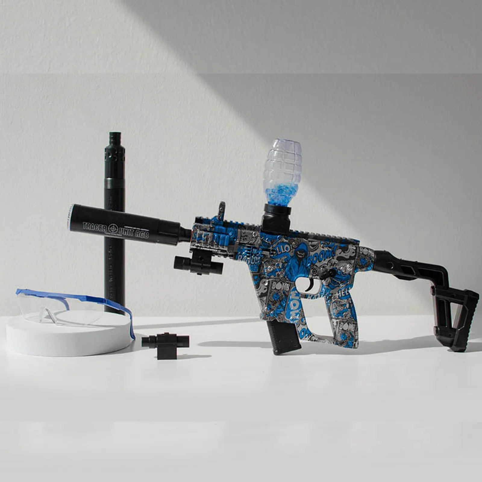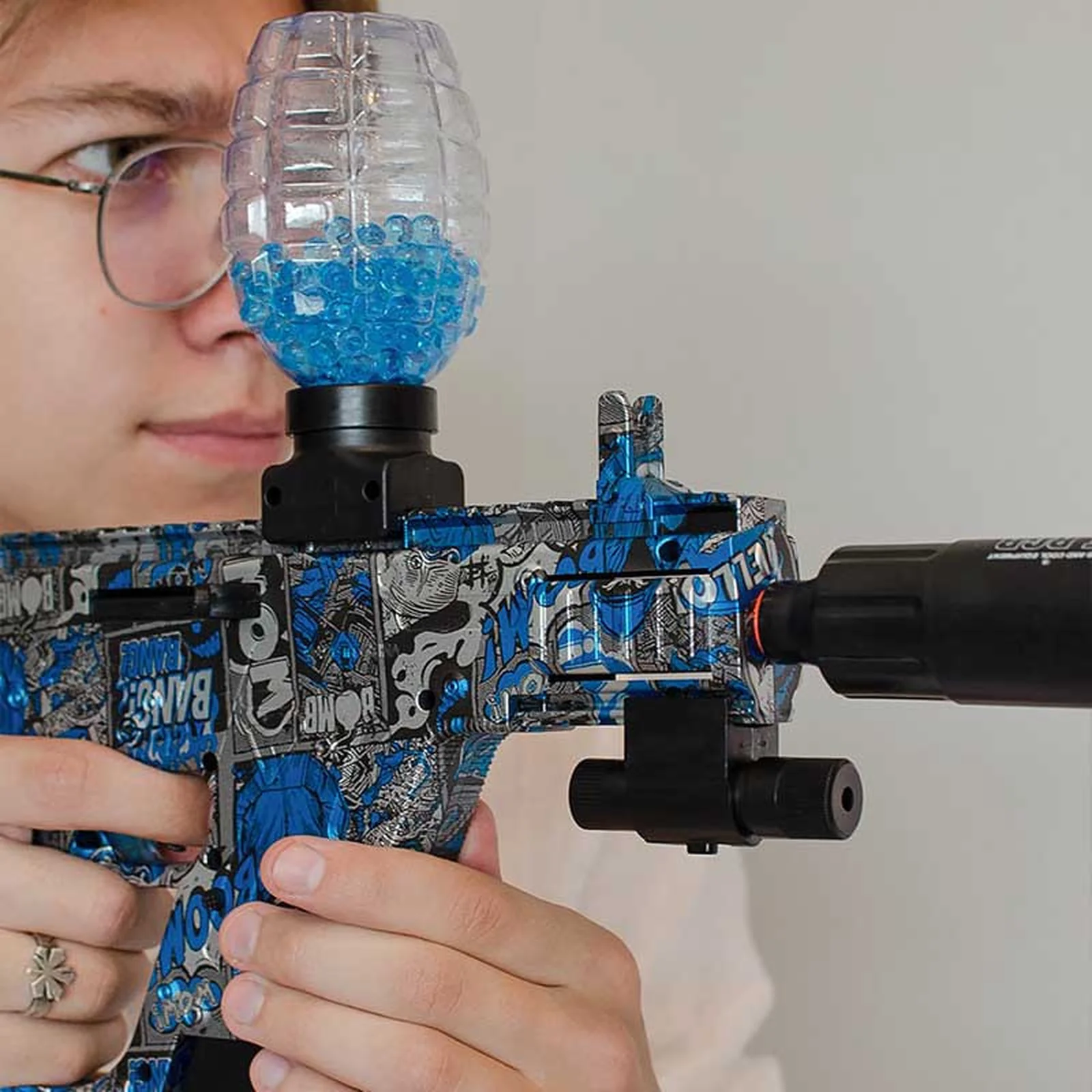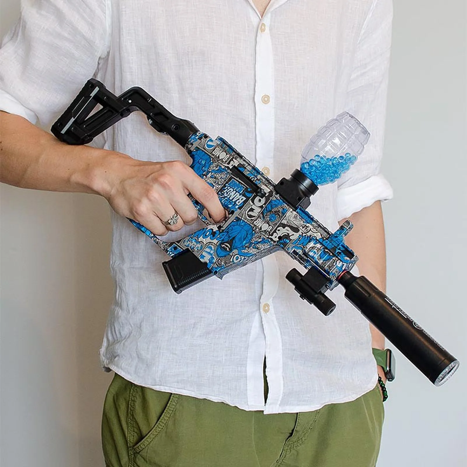 Додаткова ручка на корпусі забезпечує зручний та надійний хват, дозволяючи впевнено керувати зброєю навіть у активних іграх.