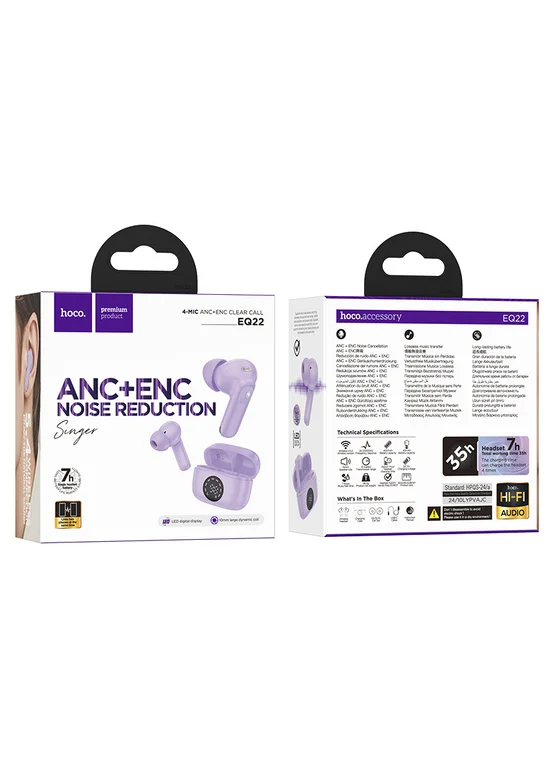 Бездротові навушники TWS Hoco EQ22 Singer ANC+ENC Taro Purple