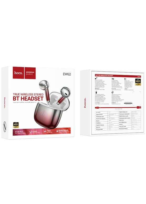 Бездротові TWS навушники Hoco EW62 Glitter Red glaze