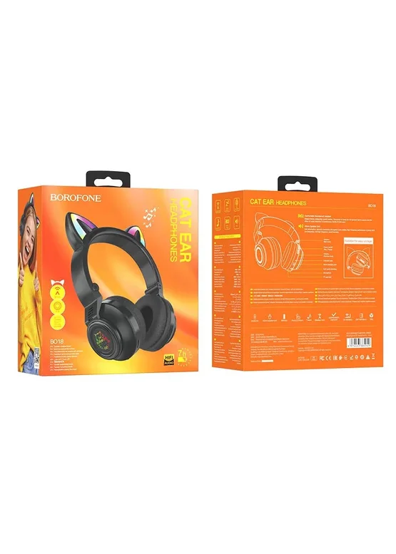 Bluetooth навушники BOROFONE BO18 Cat ear Чорний