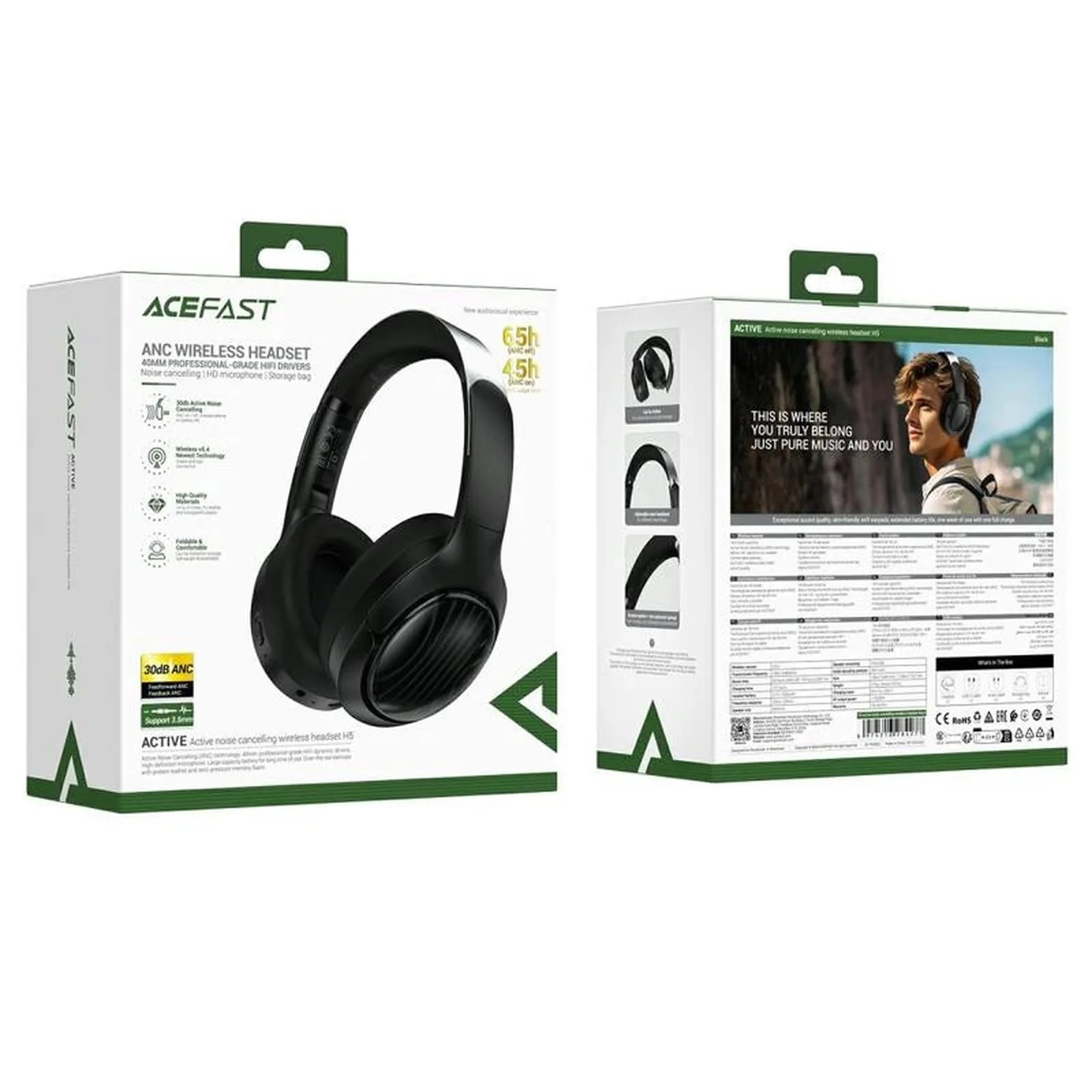 Накладні бездротові навушники Acefast H5 ANC Black
