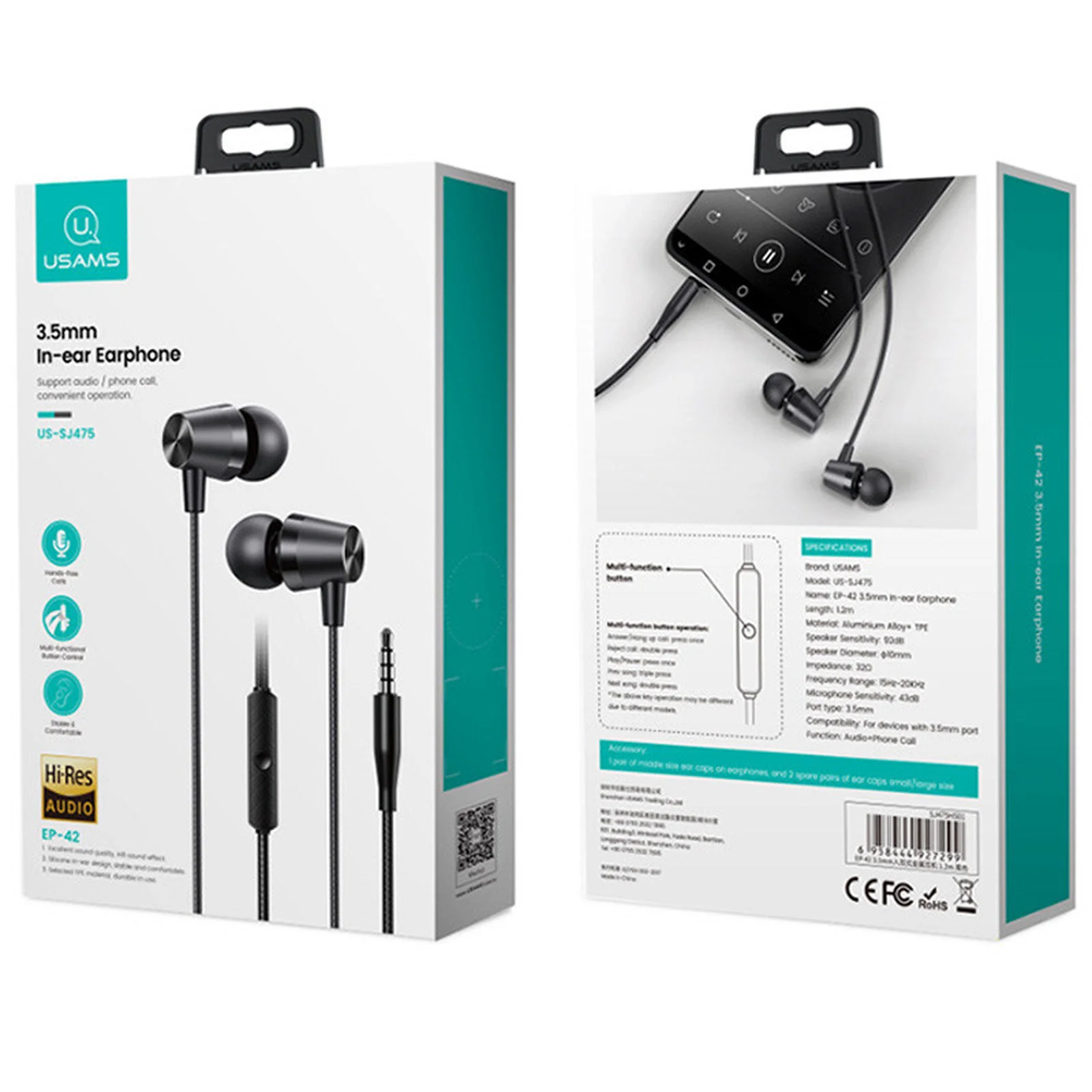 Навушники Usams EP-42 з мікрофоном (3.5mm / 1.2m) (Чорний)
