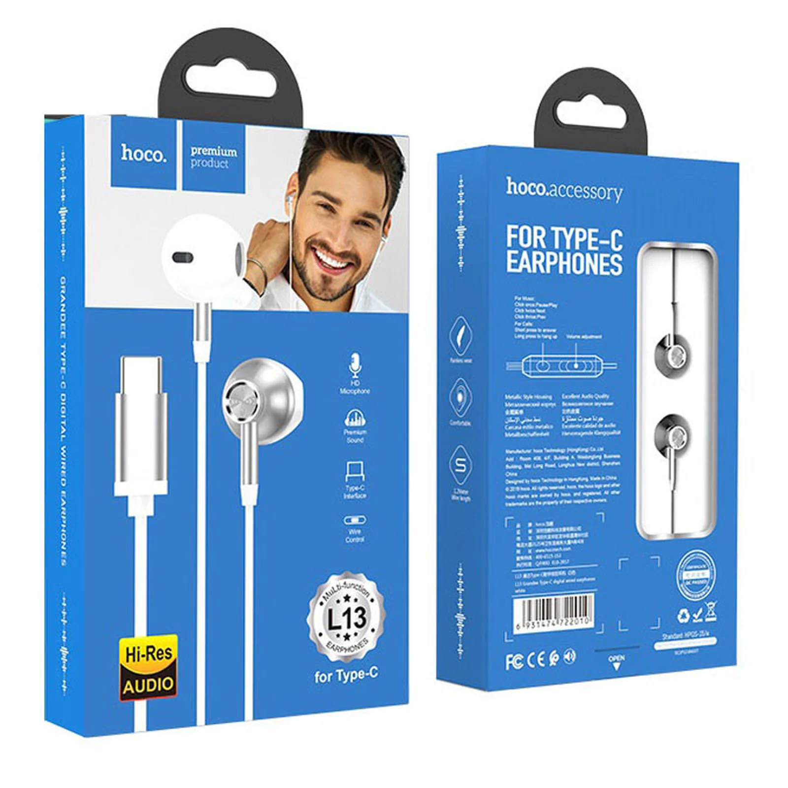 Стерео Навушники Hoco L13 Type-C Білий