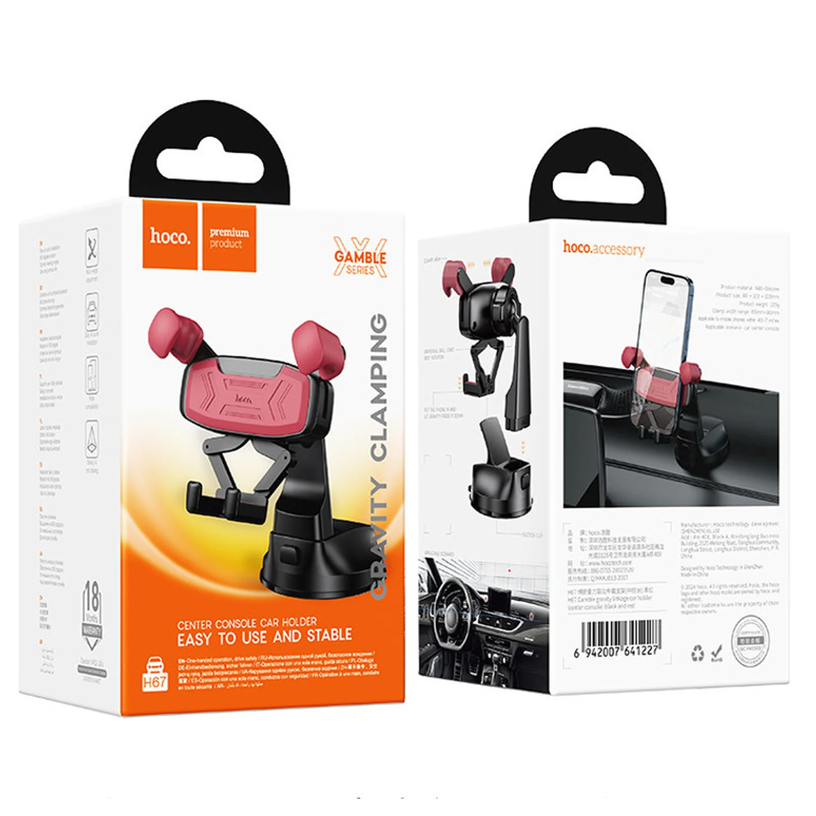 Автотримач Hoco H67 Gamble gravity linkage (center console) Black / Red