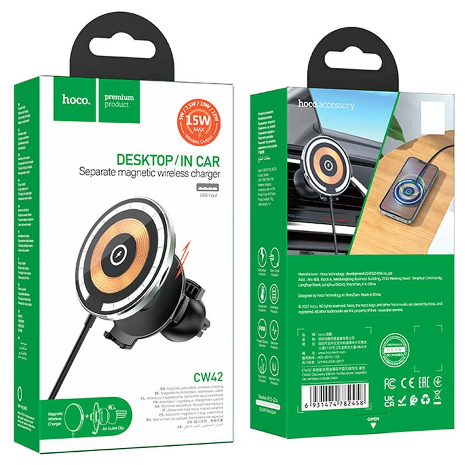Автотримач із БЗУ Hoco CW42 магнітний Black