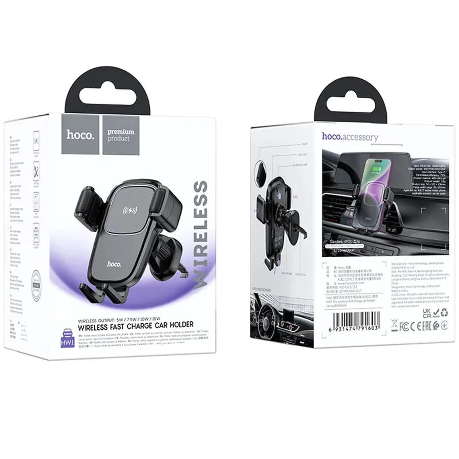 Автоутримувач із БЗУ Hoco HW1 Pro Black