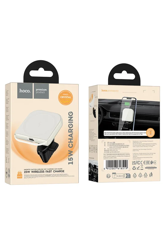 Автотримач із БЗУ Hoco HW17 Crystal (air outlet) White