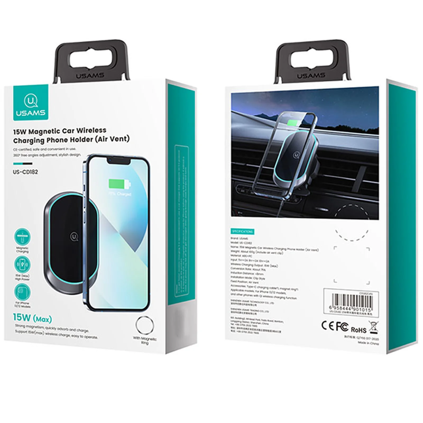 Автоутримувач із БЗУ Usams US-CD182 15W Air Vent Black
