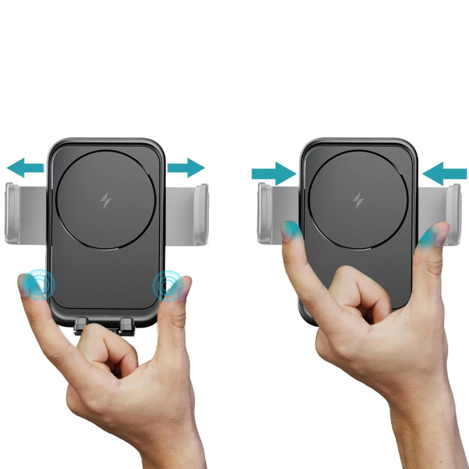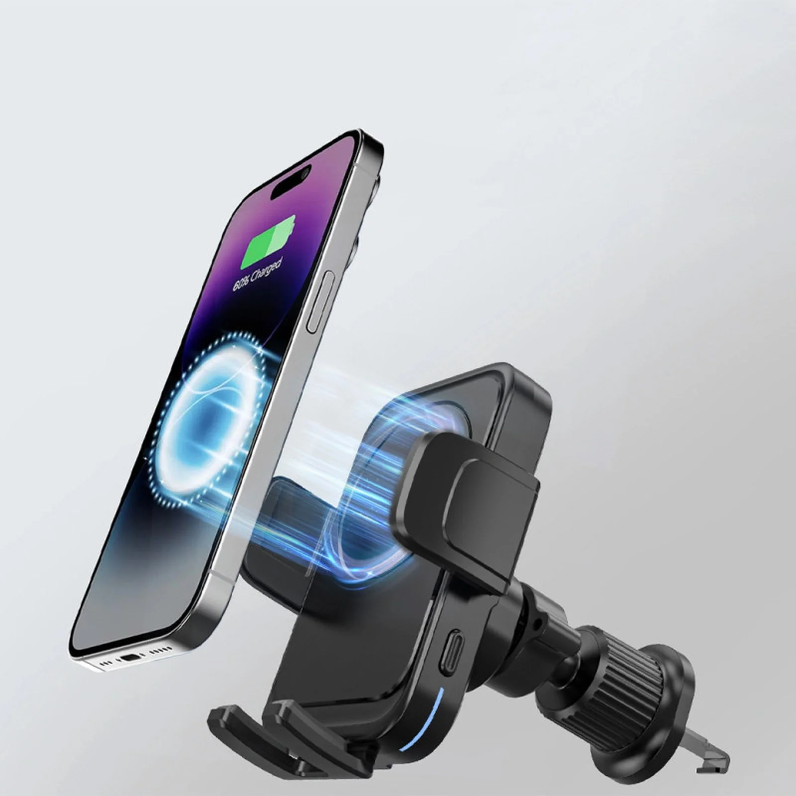 Стильний та технологічний автотримач, виконаний із міцного композитного матеріалу PC+ABS, поєднує в собі надійну фіксацію смартфона та розумну бездротову зарядку.