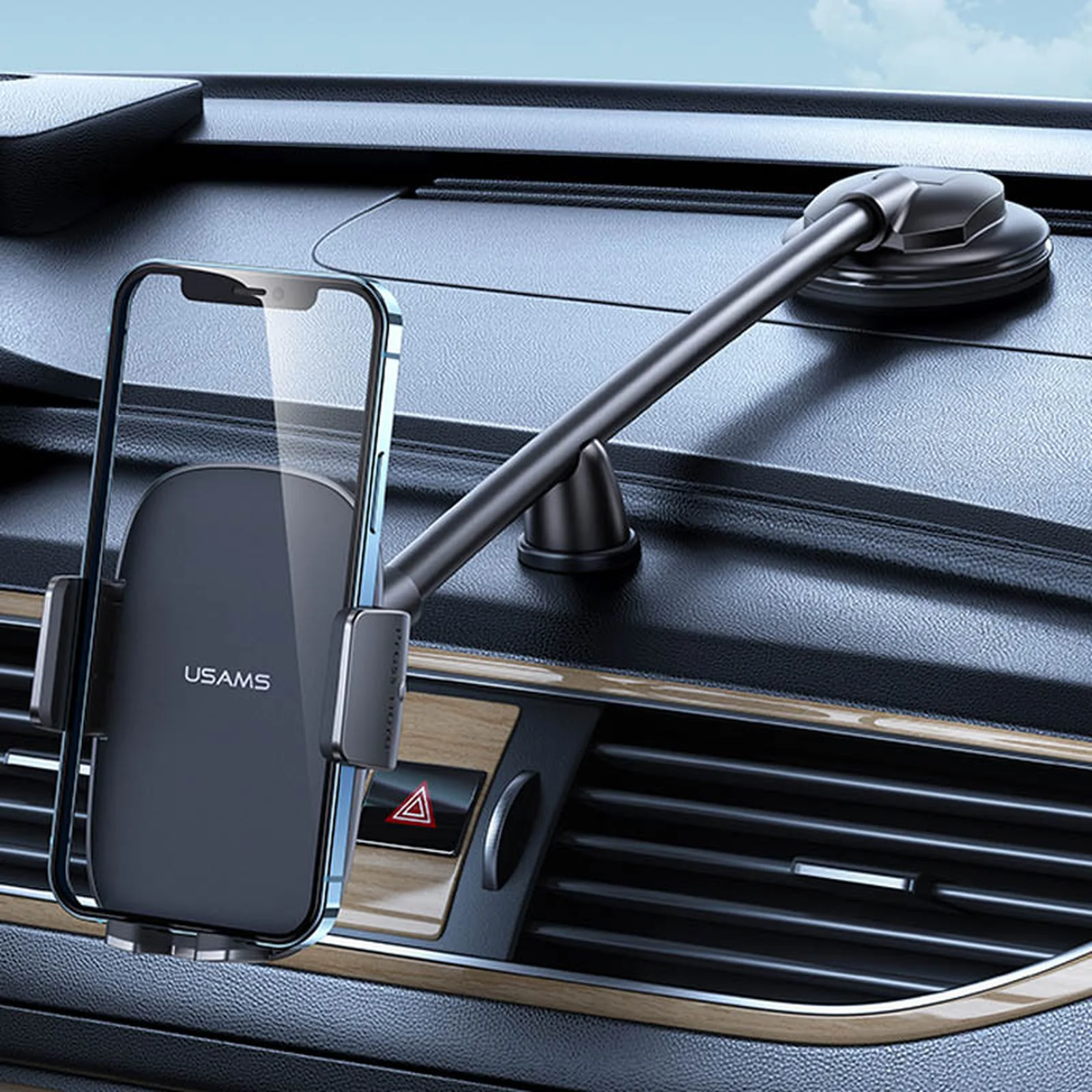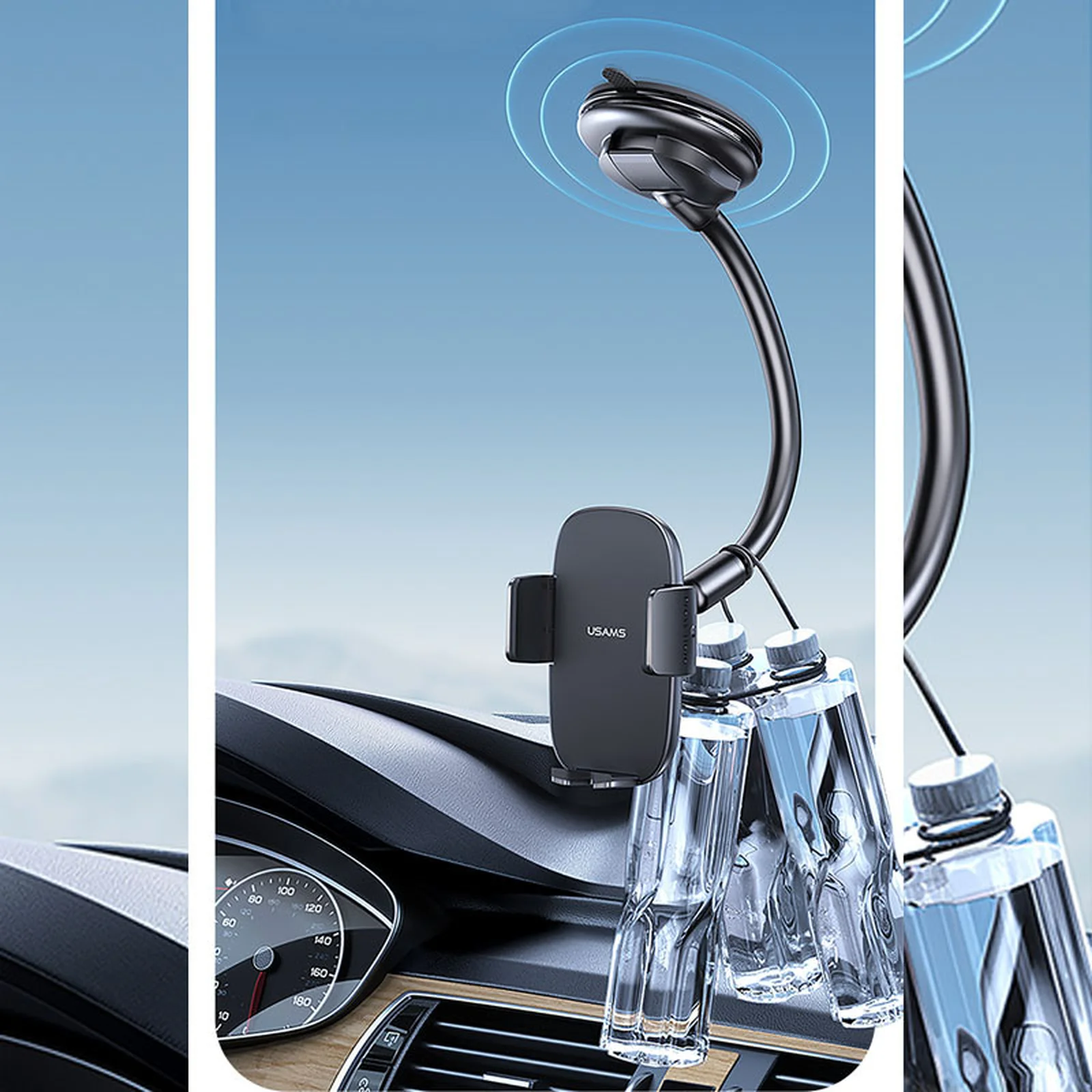 Автоутримувач Usams US-ZJ065 Car Center Console Retractable Phone Holder (Adjustable Gooseneck) Black