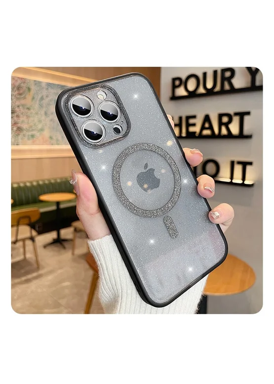 ✨ Додайте трохи блиску та стилю до вашого iPhone 12 Pro Max за допомогою цього силіконового чохла "Bling Shinny" with MagSafe у сірому кольорі! ✨