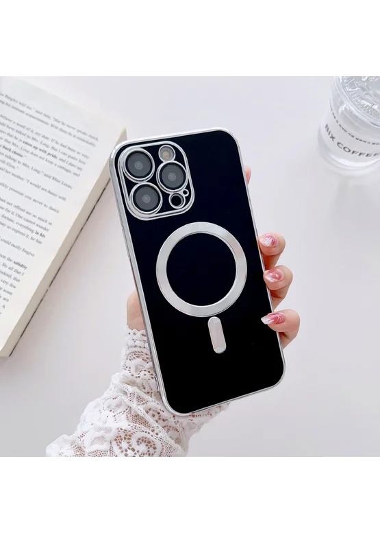 Захистіть свій iPhone 12 Pro Max з нашим силіконовим чохлом "Silver Plating" із MagSafe! Будьте впевнені у безпеці вашого девайсу! 🛡️📱🖤