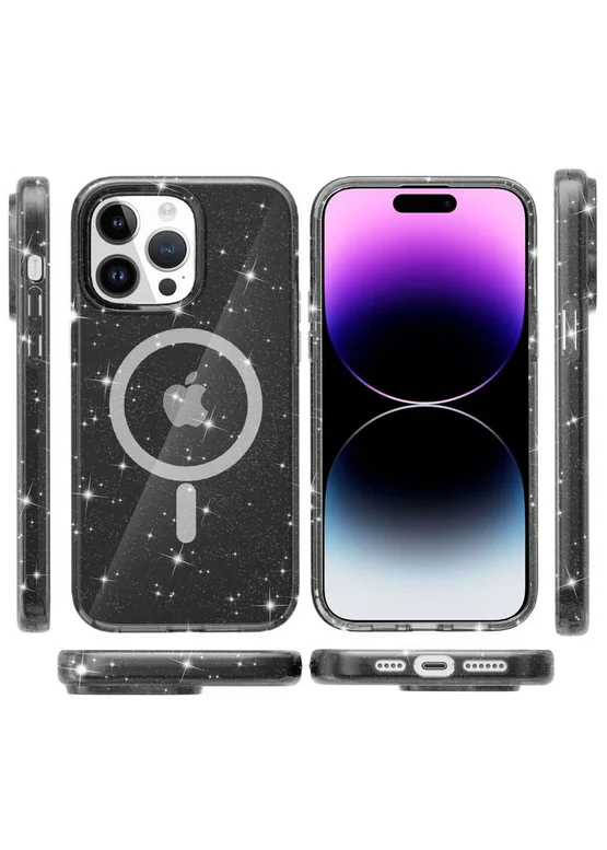 Чохол TPU Galaxy Sparkle (MagFit) для Apple iPhone 15 Pro Max (6.7") Black+Glitter
